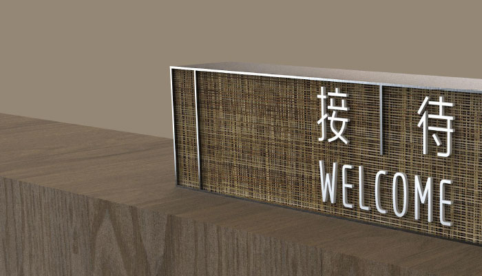 然后我們在布藝上面可以做一些立體字也可以做一些圖案的一些布藝標識還可以做一些項目的Logo。比如商場的Logo一些餐廳的Logo等等都可以在上面進行加工,二次處理,在上面通常就可以用到拉絲不銹鋼或者鏡面,不是剛形成有一個色彩的對比,這樣就會顯得更有檔次。